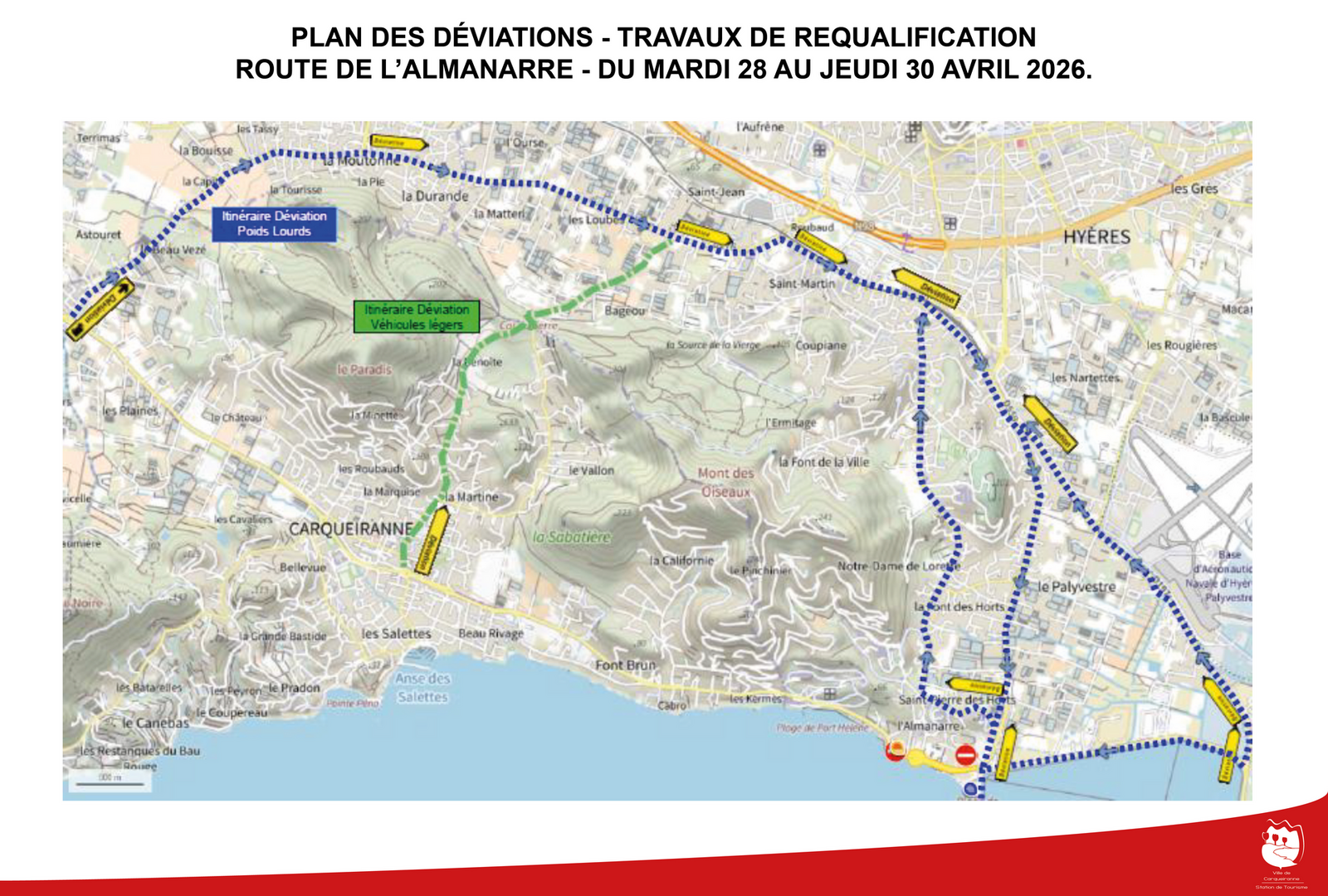 - Du mercredi 29 au jeudi 30 avril pour la mise en œuvre des enrobés