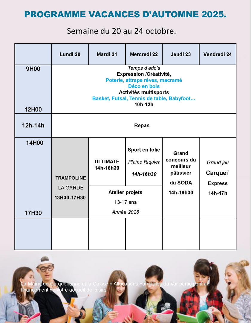 Infos et inscriptions au Guichet Unique pour Tous : 04 94 91 59 59.