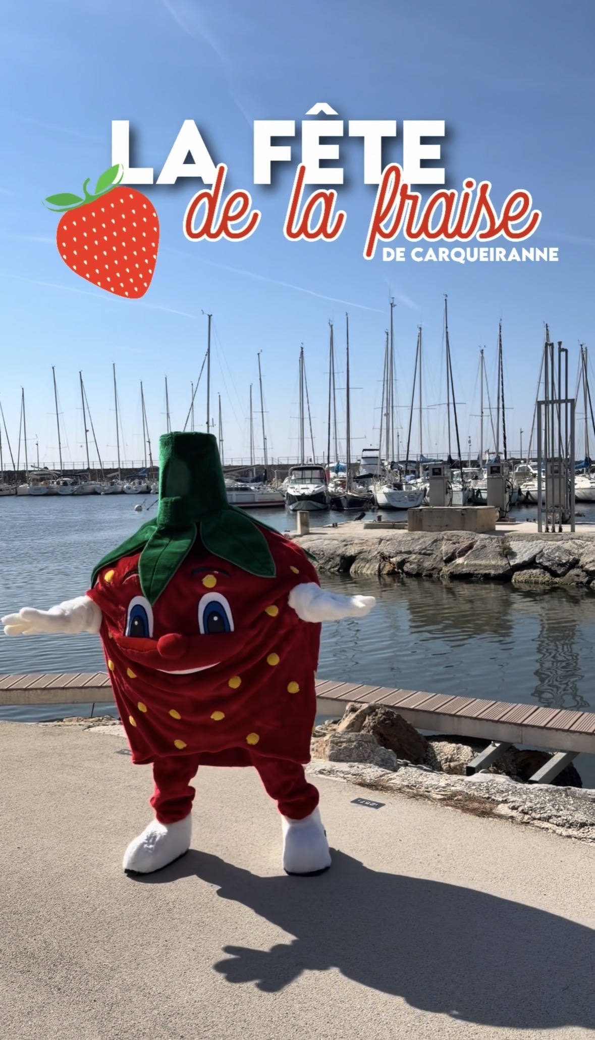 Notre mascotte Gariguette est prête à vous accueillir pour une journée pleine de gourmandise et de bonne humeur !