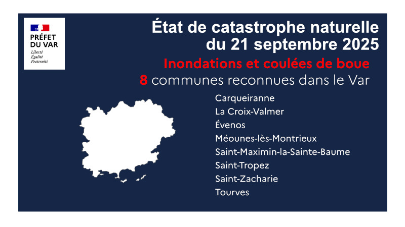 Elles s'ajoutent aux 22 communes varoises qui avaient déjà été reconnues en état de catastrophe naturelle le 25 septembre dernier, dans le cadre de de la procédure accélérée déclenchée par le ministre de l'Intérieur.