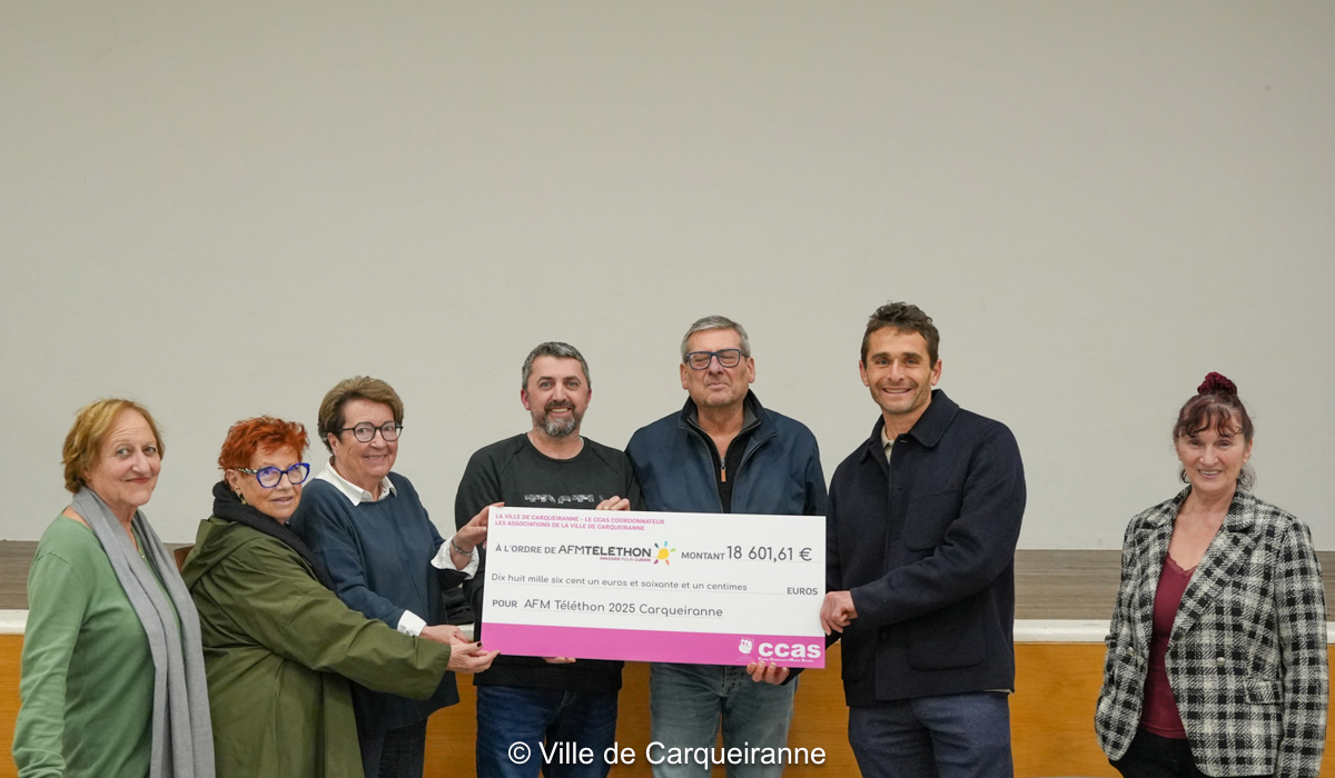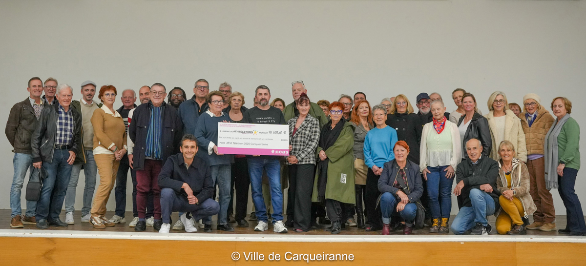 Hier soir, en salle des fêtes de l’Hôtel de Ville, Monsieur le Maire, accompagné d’élus et en présence d’associations carqueirannaises, a procédé à la remise du chèque de la somme collectée en décembre dernier dans le cadre du Téléthon 2025.
