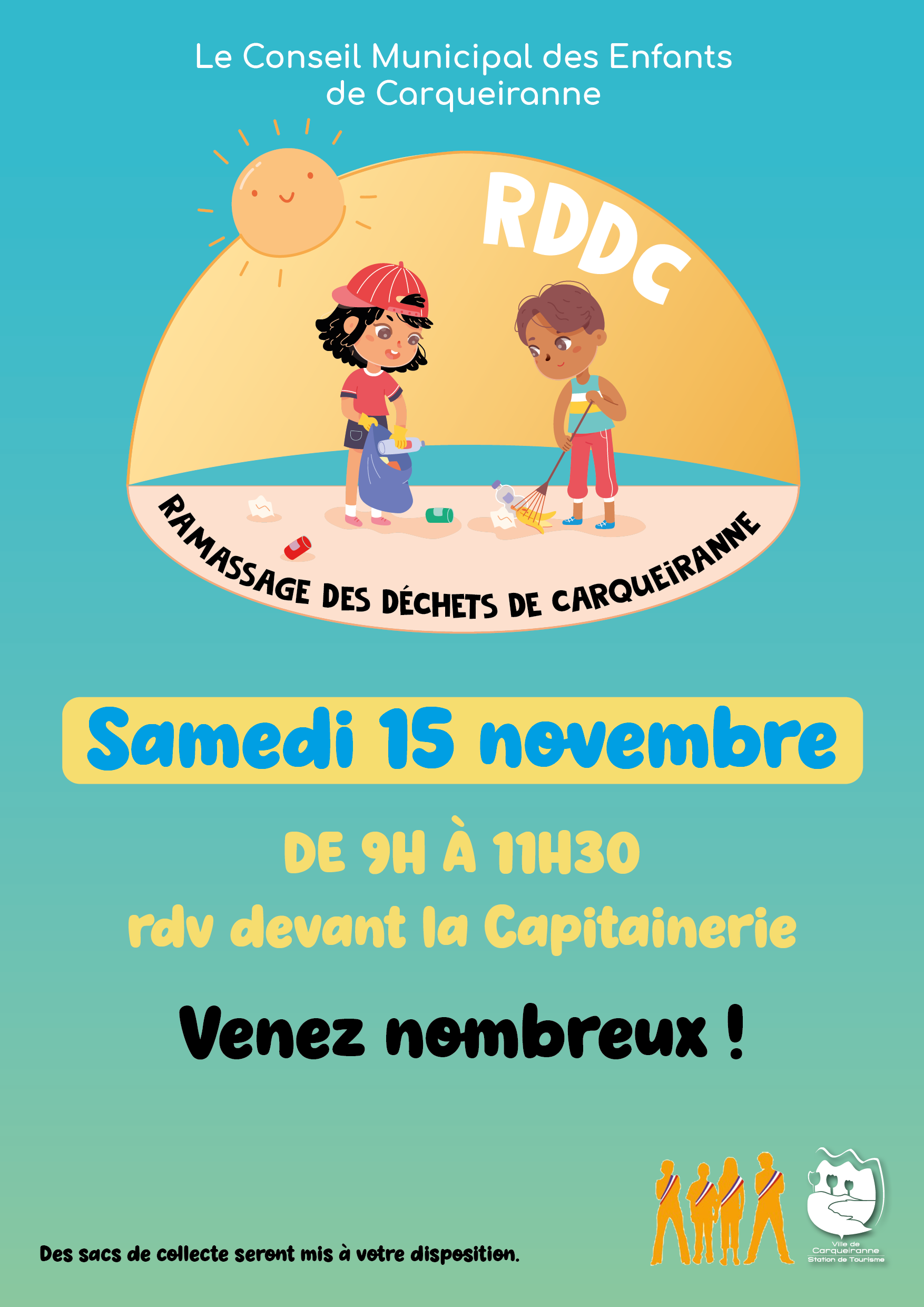 Le samedi 15 novembre de 9h à 11h30, le Conseil Municipal des Enfants organise une opération de ramassage des déchets allant de la plage Peno jusqu’au parc des Pins Penchés.