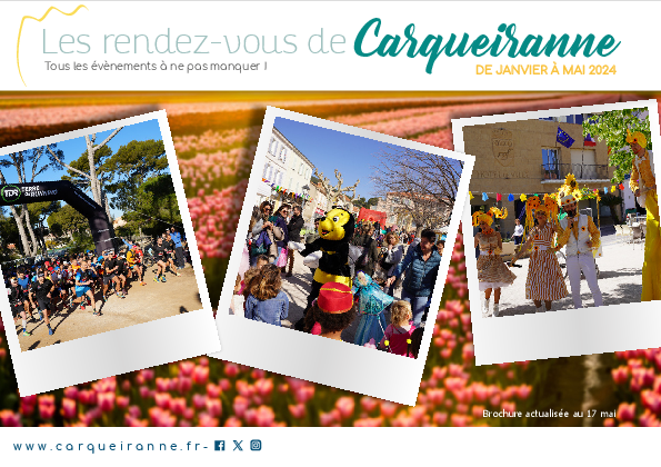 La brochure des évènements pour les mois de janvier, février, mars, avril et mai 2024 sera très prochainement distribuée dans l’ensemble des boîtes aux lettres carqueirannaises !