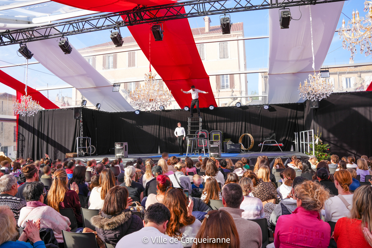 - À 11h, le spectacle « Les Melimelo » s’est déroulé sous la tente cristal. Durant ce celui-ci, le public a pu découvrir des tableaux de jonglage, d’équilibre, d’adresse et de gags clownesques.